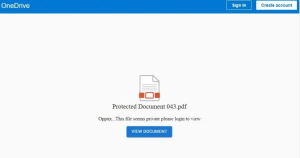 Para peneliti mengatakan bahwa ketika penerima membuka file .htm yang terlampir, mereka akan disajikan dengan halaman yang meminta mereka untuk melihat PDF palsu berjudul “Protected Document 043.pdf.” Mengklik tombol bertuliskan “VIEW DOCUMENT” akan mengarah ke formulir login palsu. Kolom email sudah terisi otomatis dan tidak dapat diedit, sementara kolom kata sandi selalu menampilkan pesan kesalahan terlepas dari apa yang dimasukkan, sebuah trik yang sering digunakan oleh penipu untuk membuat korban memasukkan kata sandi berulang kali.
